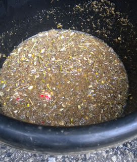 The reason why hot mash is great: in the winter horses don't like to drink cold water which can lead to dehydration and digestion issues. Bonnie has at least one of her troughs heated, so it's not a big deal for these horses. But if you don't have a heated trough, offering warm mash can help your horse get some much needed water, and keep their guts in order. This brand of mash says it's can be fed as a treat or as a nutritionally balanced meal that "helps to improve digestion and gut flow."