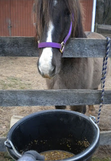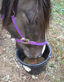 Definitely recommend the warm mash! We'll probably get some more when it decides to stay cold. The holidays have been great in the treat department--Bonnie really thoughtfully got Gobie some apple and oat biscuits, too. At this rate I'll have to start training him to be a riding pony to keep his cute figure. Ha!