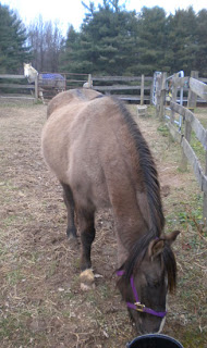 As usual, Gobie was at the gate waiting for me to let him in to the work area and give him some lovin'. But first we had some business to attend to: another dose of regular deworming. I think Bonnie did the other horses earlier but I always do Gobie myself--I think because she's not comfortable managing him on her own. Each time it's time to take his medicine, he gets a bit better with it. This time was a breeze and we were done in no time!